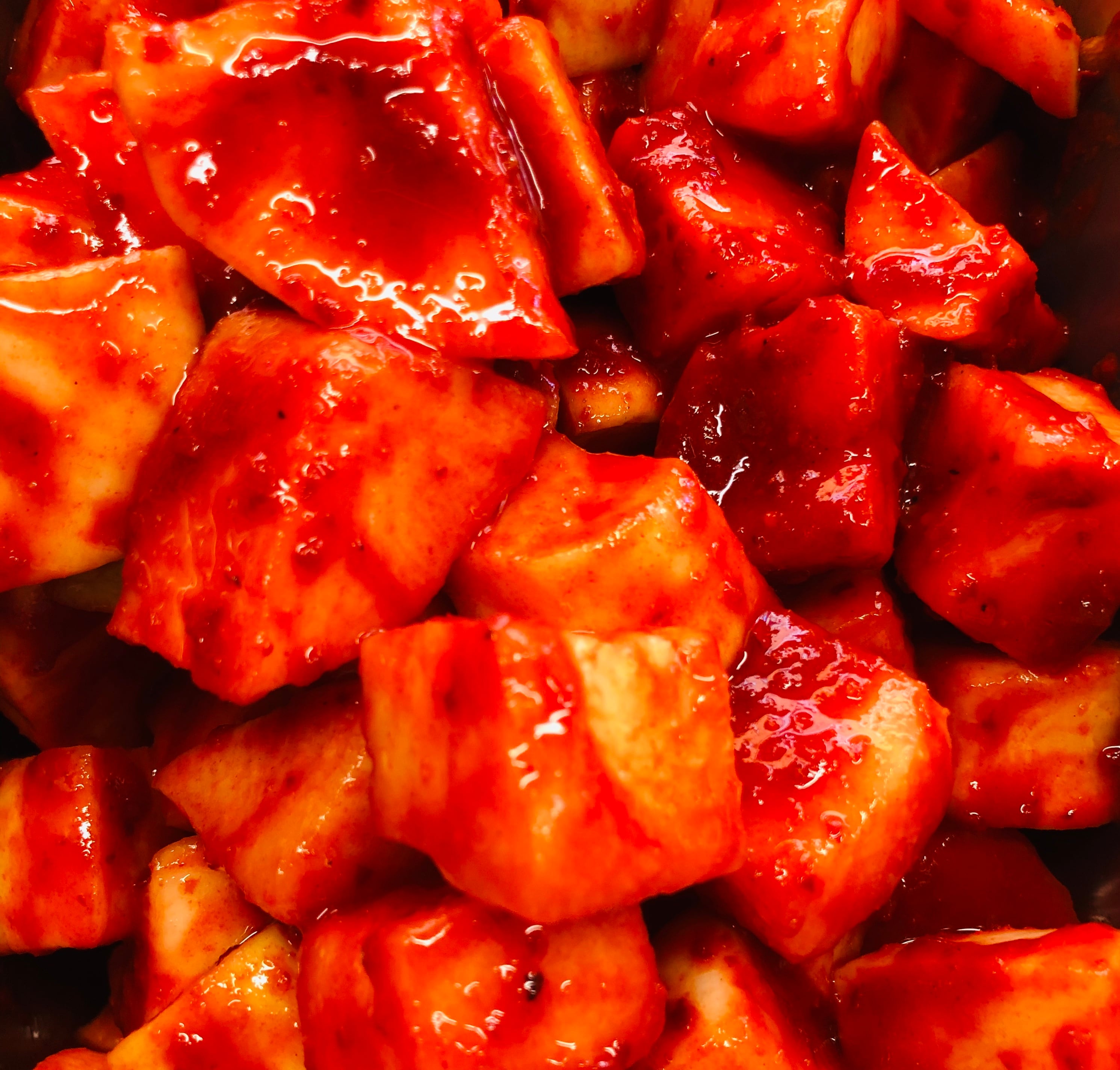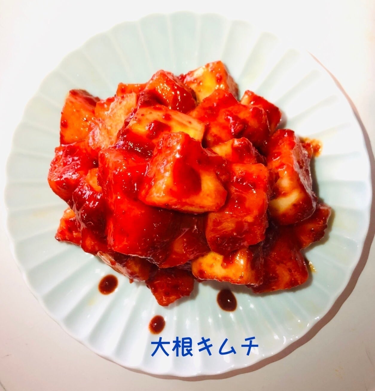 中辛味を大根の甘さをバランスで美味しいキムチを完成位あたします。
